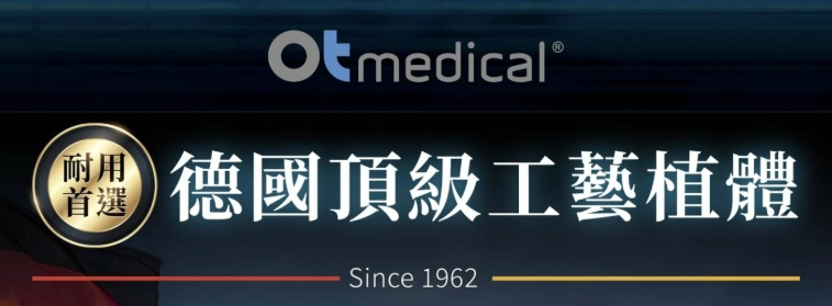 賓士級德國植體 6大OT植體優勢 德國製造高創新精密製造,提升植體穩定性 仿生科技採用最接近真牙的仿真材質 精密工藝螺紋設計刺激骨質增生,縮短植牙時間 安全可靠嚴格品質把關,確保您口腔健康 表面設計刺激骨質增生,縮短植牙時間 持久耐用高品質精心製造,守護您完美微笑 辦識原廠植體公司貨 現在您有更好的選擇! OT-F1 植體系統 OT-F2 植體系統 OT-F3 植體系統 活動訊息 Hello world! 全台合作院所 以下是為了能夠滿足段落所需的長度而定義的無意義內文,請自行參酌編排。 查看全台合作院所